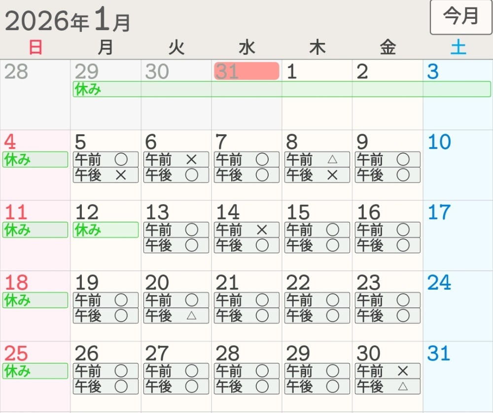 「✕」になっている日や「土日祝」でも、人数や